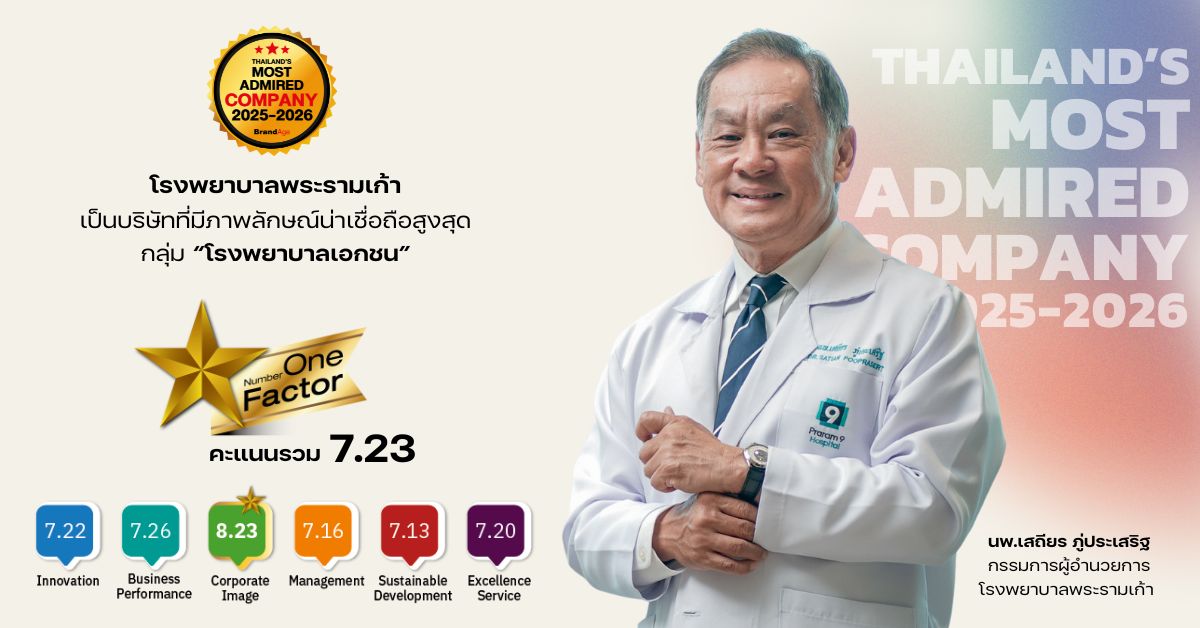 เมื่อภาพลักษณ์ของโรงพยาบาลในวันนี้ไม่ได้เกิดจากการสื่อสารเพียงด้านใดด้านหนึ่ง แต่ถูกประเมินจากหลายมิติไปพร้อมกัน หนึ่งในโรงพยาบาลที่ถ่ายทอดภาพนี้ออกมาได้อย่างชัดเจนคือ “โรงพยาบาลพระรามเก้า” การันตีจากผลวิจัย2025-2026 Thailand’s Most Admired Company โดยโดดเด่นในปัจจัยภาพลักษณ์ (Corporate Image) ซึ่งไม่ใช่เพียงเครื่องหมายของความแข็งแกร่งขององค์กร แต่เป็นภาพสะท้อนของการดำเนินธุรกิจที่มีแนวคิดและทิศทางรองรับอย่างชัดเจน